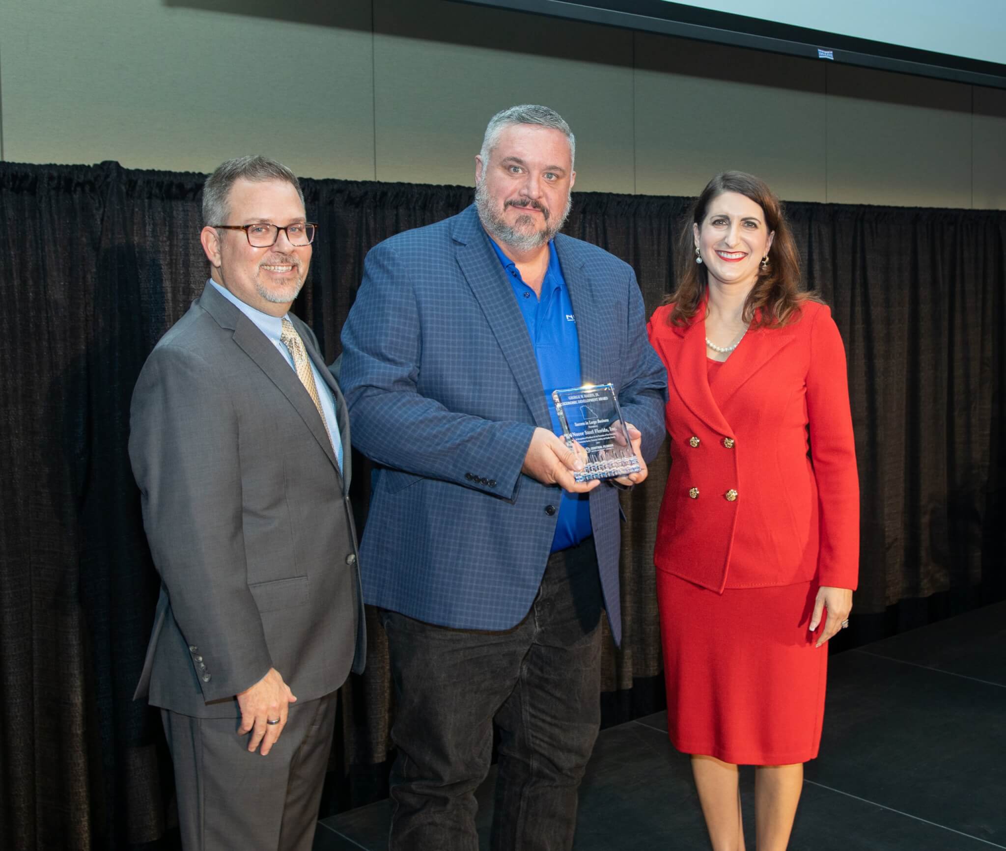 Nucor Steel is the winner of the George W. Harris Jr. Economic Development Award for Success in Large Business. The award, given to companies with at least 100 employees, was named for George Harris, a former CFDC chairman and president of Citrus and Chemical Bank. Businesses were nominated based on their community service, commitment to growth in business, economic stability and promotion of free enterprise.