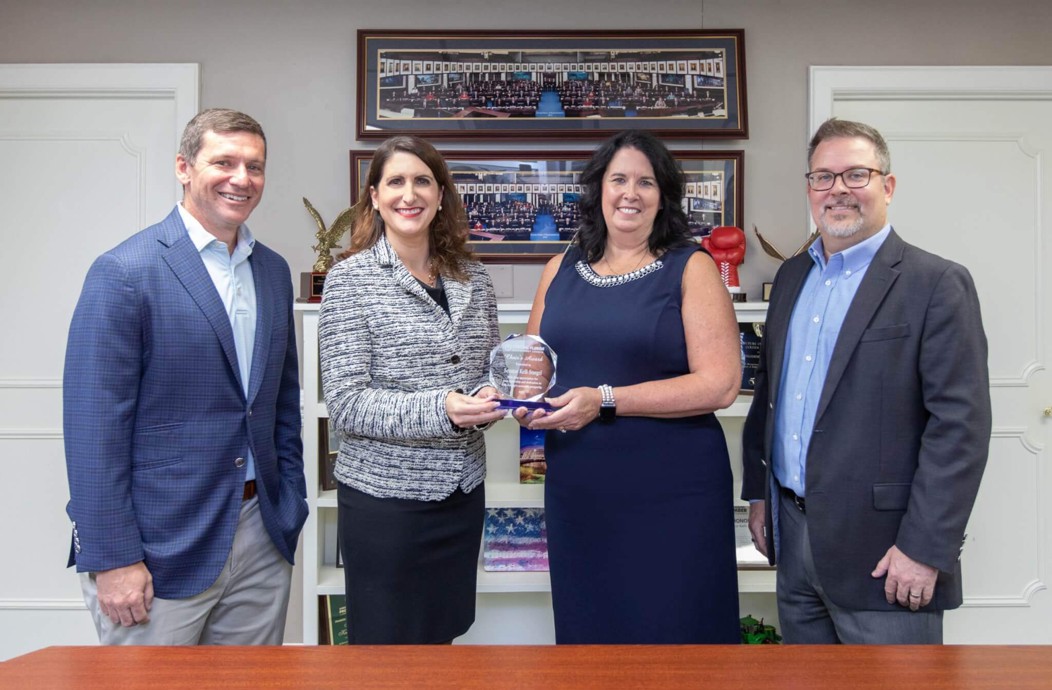 Outgoing Chair Dr. Angela Garcia Falconetti presented state Senator Kelli Stargel with the 2021 Chair’s Award for her work supporting economic development in a ceremony before the annual meeting. A scheduling conflict prevented Stargel from being at the meeting.